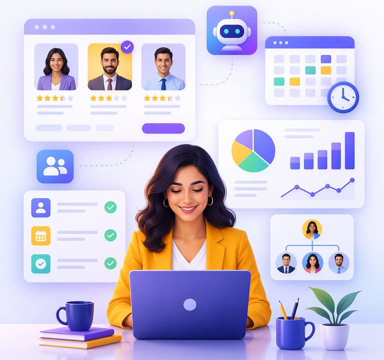 Automate recruitment, attendance, employee lifecycle, and workforce analytics.
