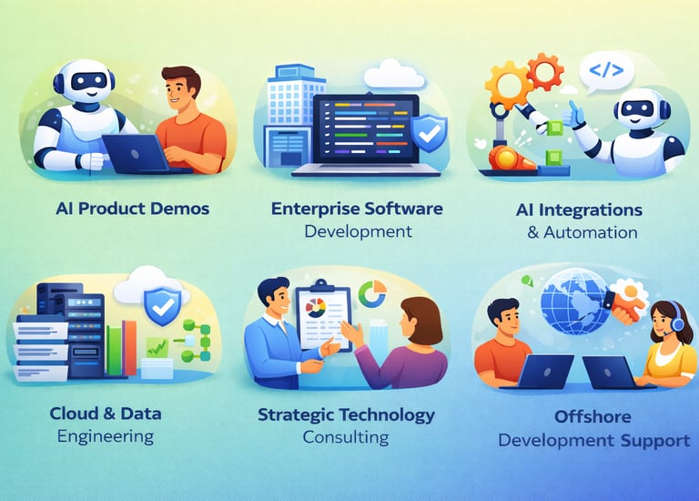 Whether you need AI solutions, product demos, software development, or consulting support, our team is ready to help.